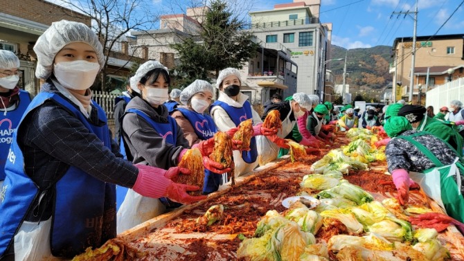 이미지 확대보기강원도 양구군과 함께 펼친 '사랑의 쌀·김장김치 나눔' 봉사 활동은 바인그룹이 2004년부터 17년 째 한 해도 빠지지 않고 매년 참여하는 기업의 사회공헌 활동이다.