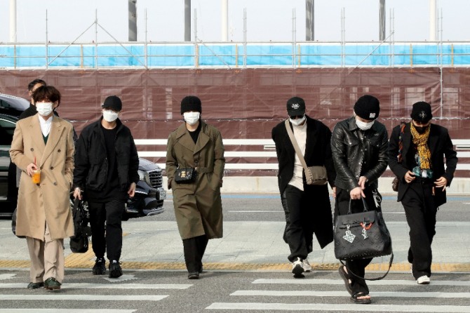 BTS가 지난 17일 인천국제공항을 통해 미국 LA로 출국하고 있다. 사진=뉴시스이미지 확대보기