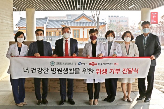 같은 날 애경산업의 위생 전문 브랜드 ‘랩신’(LABCCiN)은 서울시 강서구 이대서울병원에서 랩신의 손소독제를 기부하는 전달식을 개최했다.