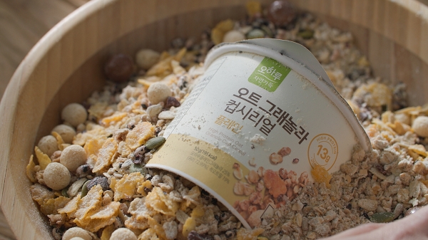 오트밀은 미국 ‘타임지’가 선정한 10대 수퍼푸드 중 하나로 저당식·비건 열풍 등의 영향으로 국내에서도 대표적인 건강식품으로 자리 잡고 있다. 이와 함께 코로나19 영향으로 식사 대용 품목이 지속 성장하자 오하루 자연가득은 지난 2020년 오트를 활용한 ‘오트밀 쉐이크’를 출시하며 누적 주문 금액 72억원, 511만병의 높은 판매 기록을 세웠다. ‘오트 그래놀라 컵 시리얼’은 오트를 주재료로 한 두 번째 식사 대용 간편식으로 오하루 자연 가득의 오트밀 쉐이크를 뒤이을 베스트셀러가 될 것으로 기대하고 있다.