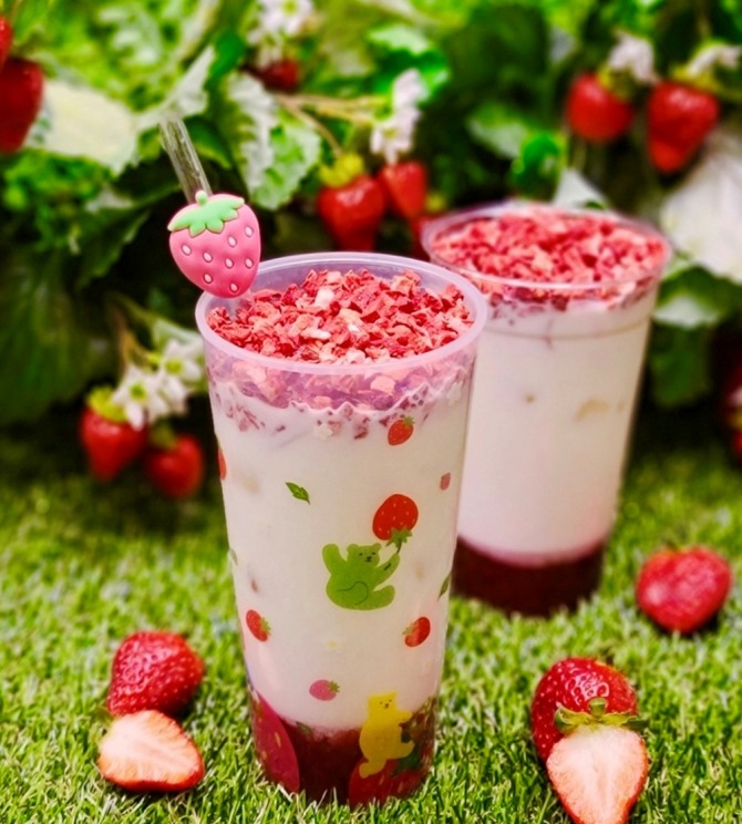 상큼한 딸기와 귀여운 젤리베어가 어우러진 리유저블컵 음료도 마련