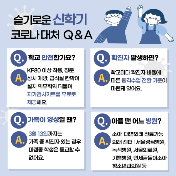 이미지 확대보기아래는 코로나19 팬데믹에 슬기롭게 대처하기 위해 신학기를 앞둔 부모의 궁금증을 문답 형식으로 정리했다.