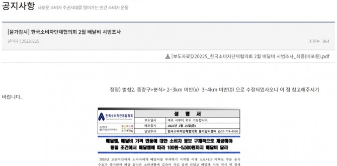 소비자단체협의회, 결과 발표 이틀 뒤 내용 수정