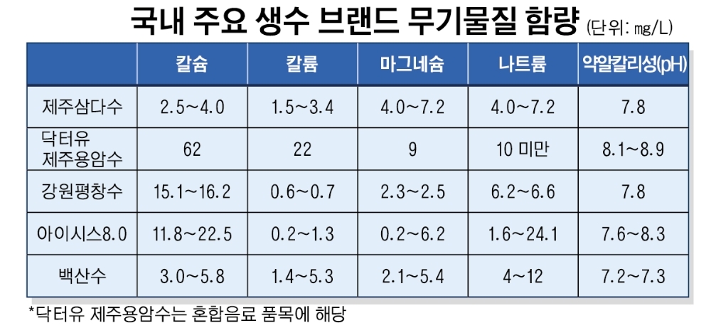 지하수·광천수 등 수원지마다 미네랄 함량 달라
