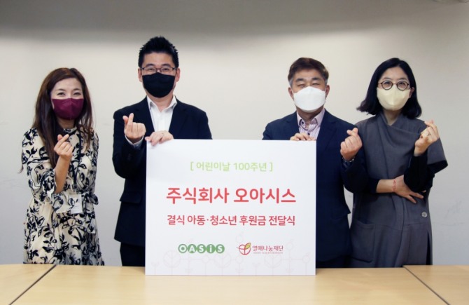 김추인 열매나눔재단 사무총장은 "우리의 미래인 아이들을 건강하게 돌볼 수 있는 지원사업을 뜻 깊은 어린이날 100주년에 오아시스마켓과 함께하게 돼서 매우 기쁘다"고 강조했다.