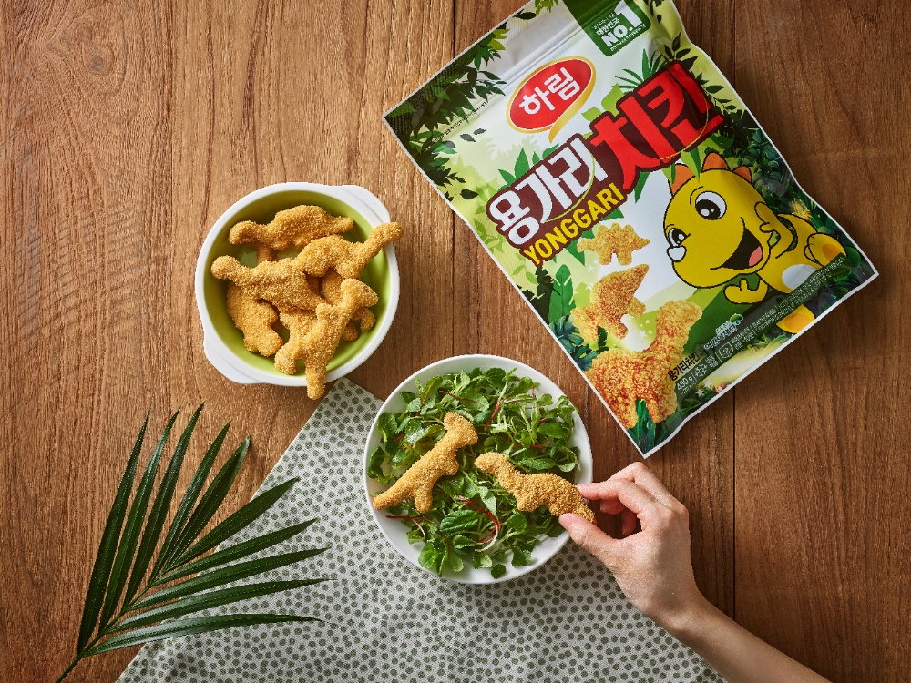 하림 '용가리치킨'은 23년간 아이들 사랑을 듬뿍 받고 있는 장수 브랜드 제품이다. 약 13억마리 지구 3.4바퀴 돌 정도로 판매