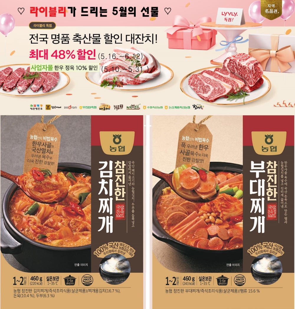 한편, 100% 국산 재료로 만든 HMR 신제품 '농협 참진한 김치찌개·부대찌개' 2종을 16일 출시하고 전국 농협하나로마트를 통해 판매한다.