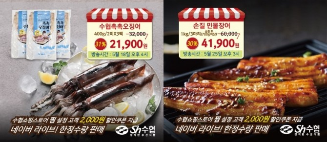 수협은 생방송 중 네이버 쇼핑라이브 수협쇼핑스토어 찜 설정 고객을 대상으로 2000원 할인쿠폰을 제공한다. 상품 구매 고객을 선정해 수산물을 추가 증정하는 이벤트도 진행한다.