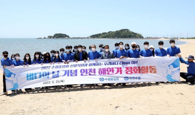 홍진근 수협중앙회 대표이사, 조창남 인천수협 조합장, 신입직원, 바다환경감시단 등 50여명이 참석해 인천 중구 선녀바위로 해변 500m 구역을 돌며 해안가 쓰레기 수거에 나섰다.