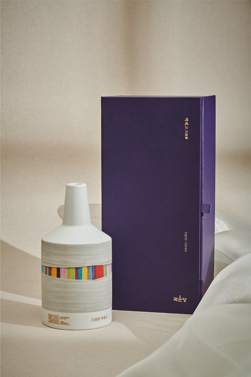국순당은 올해 초 출시한 50주년 기념 증류주 '백세고(百歲膏)'가 용기 및 제품 디자인의 예술적인 가치를 인정받아 조형예술품 전시회인 '조형아트서울 2022'에 출품돼 전시된다고 26일 밝혔다.