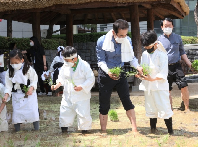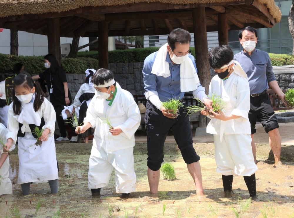 농협 이성희 회장, 어린이들과 도심 속 전통 손모내기 행사 참여