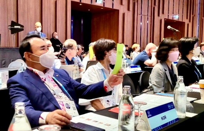 이미지 확대보기10일 정기총회에서 국제빙상연맹 회장으로 선출된 김재열 국제빙상연맹 집행위원은 1892년 ISU가 설립된 이후 130년 역사상 최초로 非유럽인으로 당선된 쾌거를 이뤘다. 특히 피겨, 스피드, 쇼트트랙, 싱크로나이즈 등의 빙상 종목은 동계스포츠의 핵심이기에 이번 선출의 의미가 더 크다고 할 수 있다.