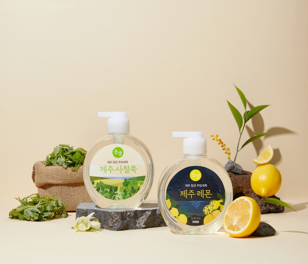 식기 세척에 효과적인 쑥을 담아 은은하고 산뜻한 향을 느낄 수 있는 '제주 사철쑥'과 물때와 악취를 제거하는데 효과적인 레몬을 담은 '제주 레몬' 등 2종으로 출시됐다.