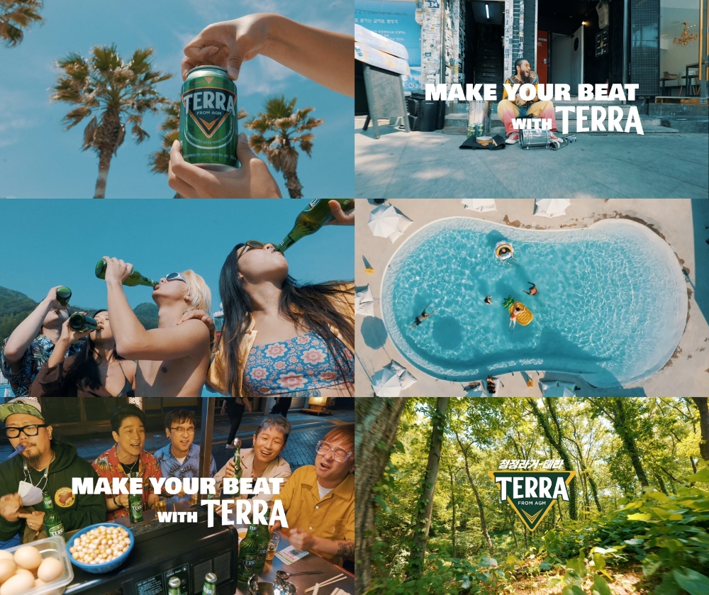 광고는 'Make Your Beat with TERRA' 슬로건 아래 다양한 사람들이 각자 비트에 맞게 테라를 즐기는 모습을 담았다.