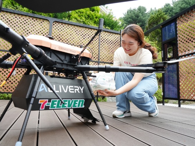 13일 세븐일레븐에 따르면 드론 배송 특화매장인 '가평수목원2호점(경기도 가평 소재)'에서 드론 배송을 시작했다. 드론 배송은 드론 물류 배송 솔루션 전문 스타트업 '파블로항공'과 함께 한다.