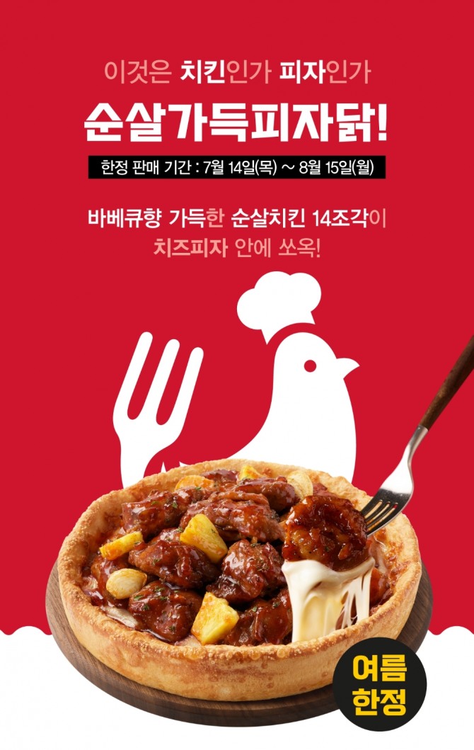 이미지 확대보기16일 관련업계에 따르면 한국피자헛은 여름 한정 스페셜 메뉴로 '순살가득피자닭'을 선보이고 출시를 기념해 할인가에 판매한다.
