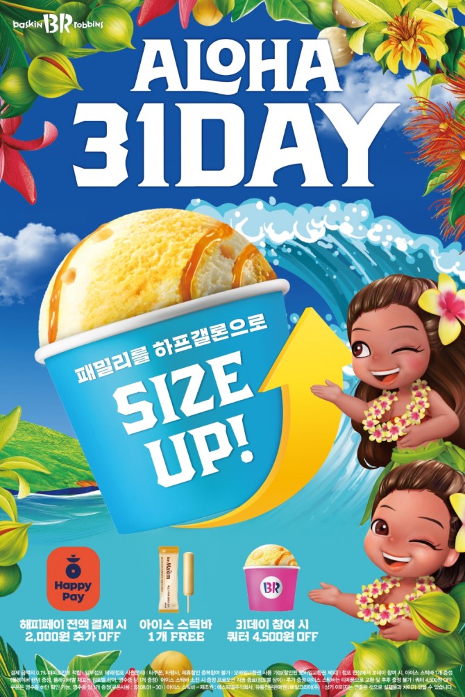 이미지 확대보기SPC그룹이 운영하는 배스킨라빈스는 기존 '31데이'에 시원한 혜택들을 더해 업그레이드한 '알로하 31데이'를 진행한다고 28일 밝혔다.