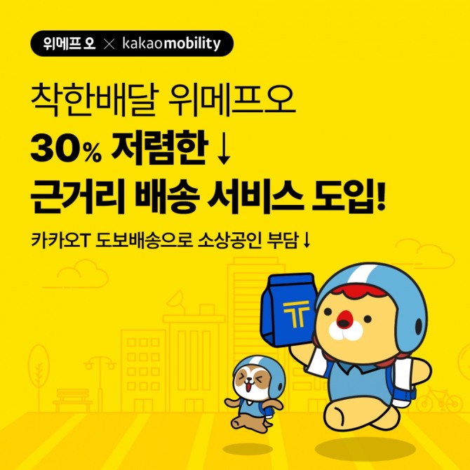 이미지 확대보기위메프오는 카카오모빌리티와 협력해 해당 배달 서비스 수수료를 기존 서비스 대비 30%가량 저렴하게 책정했다.