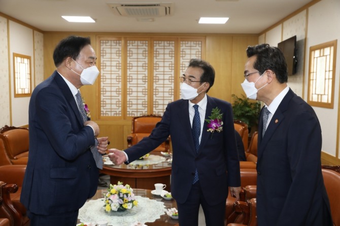 이미지 확대보기이날 임준택 회장은 서울 중구 농협중앙회 본관에서 개최된 농협중앙회 창립 61주년 기념식에서 정황근 농림축산식품부 장관, 이성희 회장과 만나 환담을 나눴다.