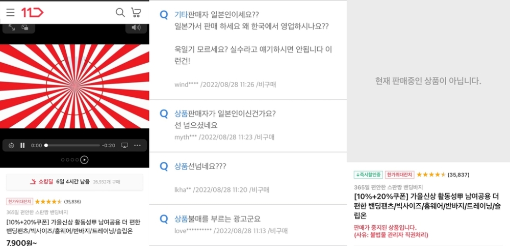 이 때문에 제품 문의 게시판에는 전날부터 욱일기가 연상되니 광고를 내려달라는 항의 글이 수십 건 올라왔다. 11번가는 관련 논란을 인지한 뒤 곧바로 해당 제품의 판매를 중단했다.