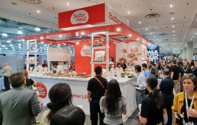 이미지 확대보기신세계푸드는 PBW에서 지난 7월 B2C 제품으로 출시한 식물성 런천 캔햄을 비롯해 콜드컷, 미트볼, 패티, 다짐육 등 독자적인 기술로 개발한 10여종의 베러미트 제품을 선보였다. 또한 전시관에서는 현지 셰프들이 직접 베러미트를 활용해 만든 샌드위치, 파스타, 카네페 등을 일일 2000명 제공하며 가정을 넘어 외식매장에서의 메뉴 확장성을 강조했다.