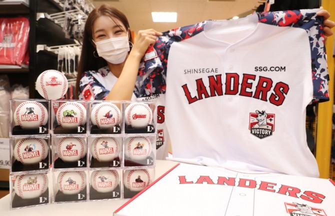 이마트는 17일부터 인천SSG랜더스필드 외야에 위치한 이마트 SSG랜더스 굿즈샵에서 SSG랜더스 '마블 에디션' 유니폼과 SSG랜더스 '마블 에디션' 기념구를 한정 판매한다.