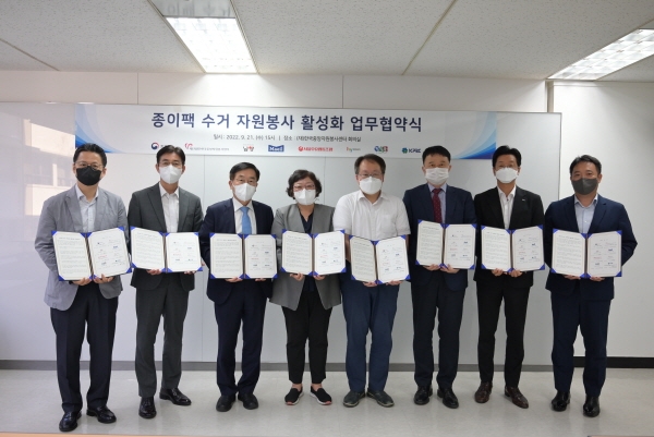이미지 확대보기이번 협약은 종이팩 회수 재활용률을 높이기 위해 마련됐다. 자원봉사자가 직접 지역 내 종이팩 다량배출처를 발굴해 종이팩 수거함을 설치하고 수거된 종이팩을 행정복지센터에 인계한다. 각 기관 및 기업은 이에 필요한 수거함, 종이팩 제품, 기타 활동 물품 등을 지원할 예정이다. 서울우유협동조합은 제품 1만2000개를 지역 자원봉사센터와 자원봉사 참여 다량배출처에 무상 제공하고 프로그램에 대한 대내외 홍보에 나서는 등 종이팩 제품 생산자로서 책임을 다하는 데 앞장선다.