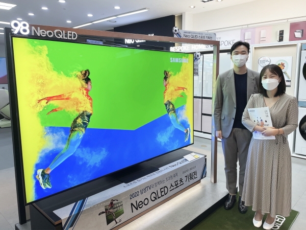 이미지 확대보기65인치 TV 행사 모델 구매 시 30만원 상당 사운드바를 사은품으로 증정하며 대형 TV 진열 상품을 합리적인 가격으로 판매한다. 중형 TV가 필요한 고객을 위한 혜택도 준비했다. 중형 TV 행사 모델을 삼성 제휴 카드로 결제하는 고객에게는 최대 53%의 할인 혜택을 제공한다.