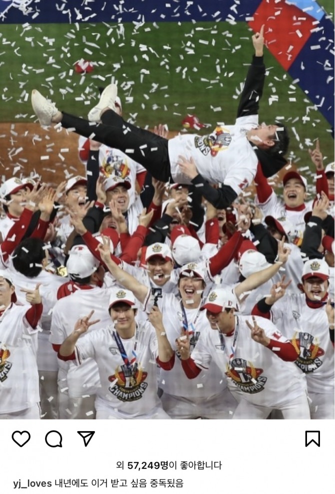 이 같은 스킨십 경영은 한국시리즈 우승 장면에서도 확인됩니다. 한국시리즈 우승이 확정되자 선수들은 그라운드로 내려온 정부회장을 헹가래치며 격한 고마움을 표했죠.