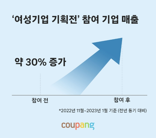 이미지 확대보기8일 쿠팡에 따르면 지난 11월부터 열린 ‘여성기업 기획전’에 참여한 60개 여성 기업의 3개월간(2022년 11월~2023년 1월) 매출이 전년 동기 대비 약 30% 늘었다.