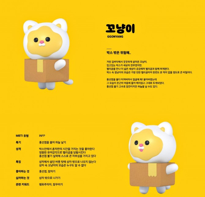 이미지 확대보기17일 업계에 따르면 롯데홈쇼핑은 벨리곰 친구 ‘꼬냥이’를 오는 4월1일 열리는 벨리곰 전시에 함께 선보인다. 지난해 4월 서울 잠실 롯데월드타워 앞에서 열린 초대형 벨리곰 야외 전시의 형태로, 새 캐릭터 꼬냥이를 조형물로 만들어 대중 앞에 세운다는 계획이다. 전시 장소는 현재 물색 중이다. 롯데홈쇼핑 관계자는 “지난해 별도의 홍보 없이 공개됐는데, 올해 굿즈 판매와 전시 등으로 홍보 활동을 확대하려 한다”고 전했다.