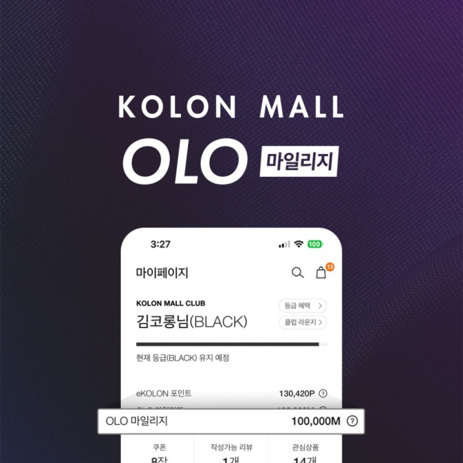 코오롱몰 관계자는 “OLO마일리지는 코오롱몰 충성 고객을 위한 제도이다. 이미 코오롱몰의 가족인 고객에게 더 큰 혜택을 드리면서 코오롱몰에서의 유쾌한 쇼핑 경험을 쌓길 바란다”고 말했다.