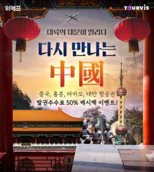 이미지 확대보기5~30일 진행하는 이번 프로모션에서는 베이징·칭다오·홍콩·마카오·타이베이 등 중화권 전 도시 대상으로 할인 쿠폰을 지급한다. 또 왕복 예약 시 발권 수수료의 50%를 위메프 포인트로 돌려주며 투어비스 제휴 카드로 결제시 최대 15% 즉시 할인을 제공한다.