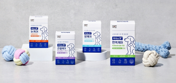 이미지 확대보기50년 생애주기별 영양설계 노하우를 담고 산양유단백을 함유한 기능성 펫 영양제품으로 새로운 카테고리 시장에 진입한다는 방침이다. 이번 신제품은 장 건강 증진 및 면역을 위한 기초 케어 라인과 퇴행성 질병 예방을 위한 맞춤 케어 라인으로 구성됐다. 제품은 반려동물의 장, 면역, 관절, 눈케어 영양제 등 총 4종이다.