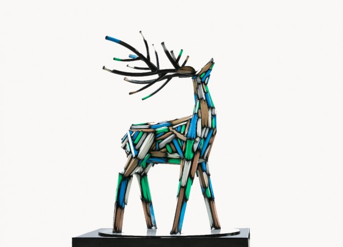 이랜드갤러리 전시장에 방문하면 2020년대 현대미술계의 블루칩 작가로 알려진 김우진 작가의 대표 작품 ‘DEER’ 조형물이 눈에 띈다.