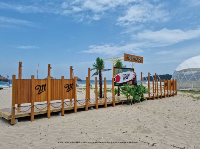 독특한 볼거리도 마련했다. ‘밀러 비치’ 샤워 존에는 인비저블 실드(Invisible Shield)로 만들어진 샤워부스가 설치됐다. 투명 광학 소재로 만들어져 빛 투과 효과를 제공해 샤워부스로 인해 가려지는 하조대 해변 풍경을 온전히 즐길 수 있다. 이밖에도 국내외 DJ들의 디제잉 공연도 준비했다.