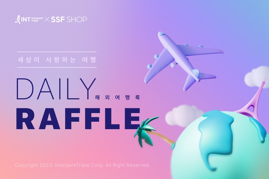 이미지 확대보기인터파크트리플이 운영하는 인터파크가 ‘해외여행룩 데일리 래플’을 진행한다. 삼성물산 패션부문의 패션ㆍ라이프스타일 전문몰 SSF샵과 협업해 선보이는 이번 프로모션은 증가하는 해외여행 수요에 발맞춰 차별화된 고객 혜택을 제공하기 위해 마련됐다.