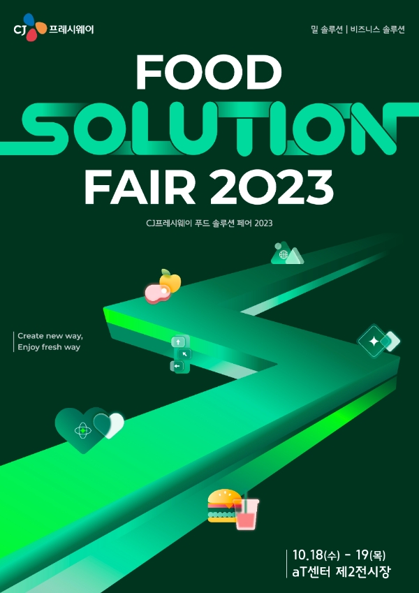 ‘푸드 솔루션 페어’는 10월12일까지 CJ프레시웨이 공식 홈페이지를 통해 온라인 사전등록을 진행할 수 있다. 사전등록 관람객은 무료로 입장할 수 있으며 현장 등록 시 관람료는 1만 원이다.