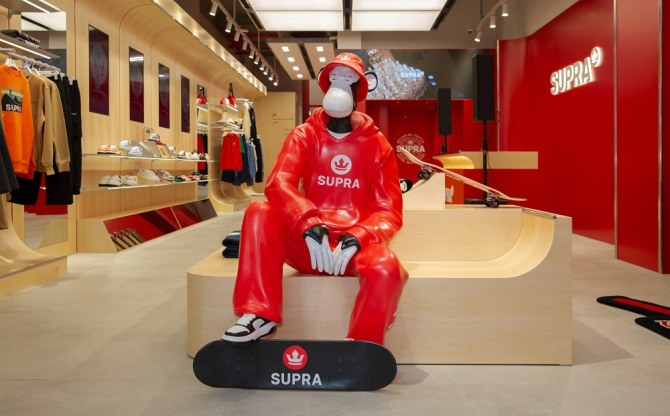명동 플래그십 스토어는 유통 채널 확장 및 브랜드 인지도를 높이기 위한 활동이다. 지난 22일 그랜드 오픈한 이 매장은 스케이트 보드 헤리티지를 반영한 디자인과 BAYC(Bored Ape Yacht Club) 그래픽을 활용한 인테리어로 수프라만의 위트 있는 감성을 느낄 수 있는 것이 특징이다.