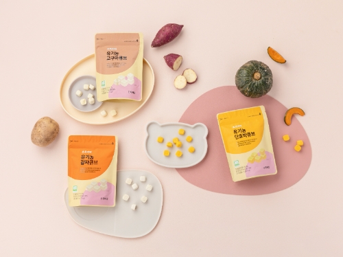 유기농 큐브는 아이가 이유식 등으로 다양한 원재료에 대한 안전성을 확인한 이후, ‘맛’에 대한 취향이 생기는 시기에 적합하다. 동결건조공법을 채택한 이유도 부드러운 표면과 식감으로 맛에 대한 경험을 해치지 않고 아이의 취향을 온전하게 판단할 수 있도록 하기 위해서다. 초기 이유식 재료로 많이 쓰여 친숙하고, 기호성이 좋은 편인 구황작물 3종을 원재료로 사용한 것도 특징이다. 특히 동결건조한 유기농 감자, 단호박 큐브는 판매처가 매우 드물어 희소성이 높다.
