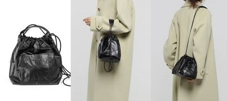 이미지 확대보기이 제품은 스트랩 조임 방법에 따라 다양하게 스타일링 할 수 있다. 베이직한 숄더백으로 연출하거나, 스트랩을 풀고 손잡이 쪽을 당겨 토트백 느낌으로, 또는 스트랩을 길게 당겨 입구를 조인 상태로 매면 미니 백팩 느낌으로 연출이 가능하다. 또한 앞면에는 브랜드 로고가 각인된 아웃포켓이, 내부에도 포켓이 있어 수납공간도 여유로운 실용적인 제품이다.