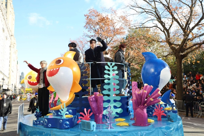 이미지 확대보기24일 더핑크퐁컴퍼니에 따르면 올해 97회째를 맞은 메이시스 퍼레이드는 매년 글로벌 대스타들이 참가하는 초대형 행사로, 핑크퐁 아기상어는 작년에 이어 올해도 뉴욕의 중심부 맨해튼 센트럴 파크부터 헤럴드 스퀘어까지 약 4km를 행진하며 뉴욕 시민들과 관광객들을 만났다.