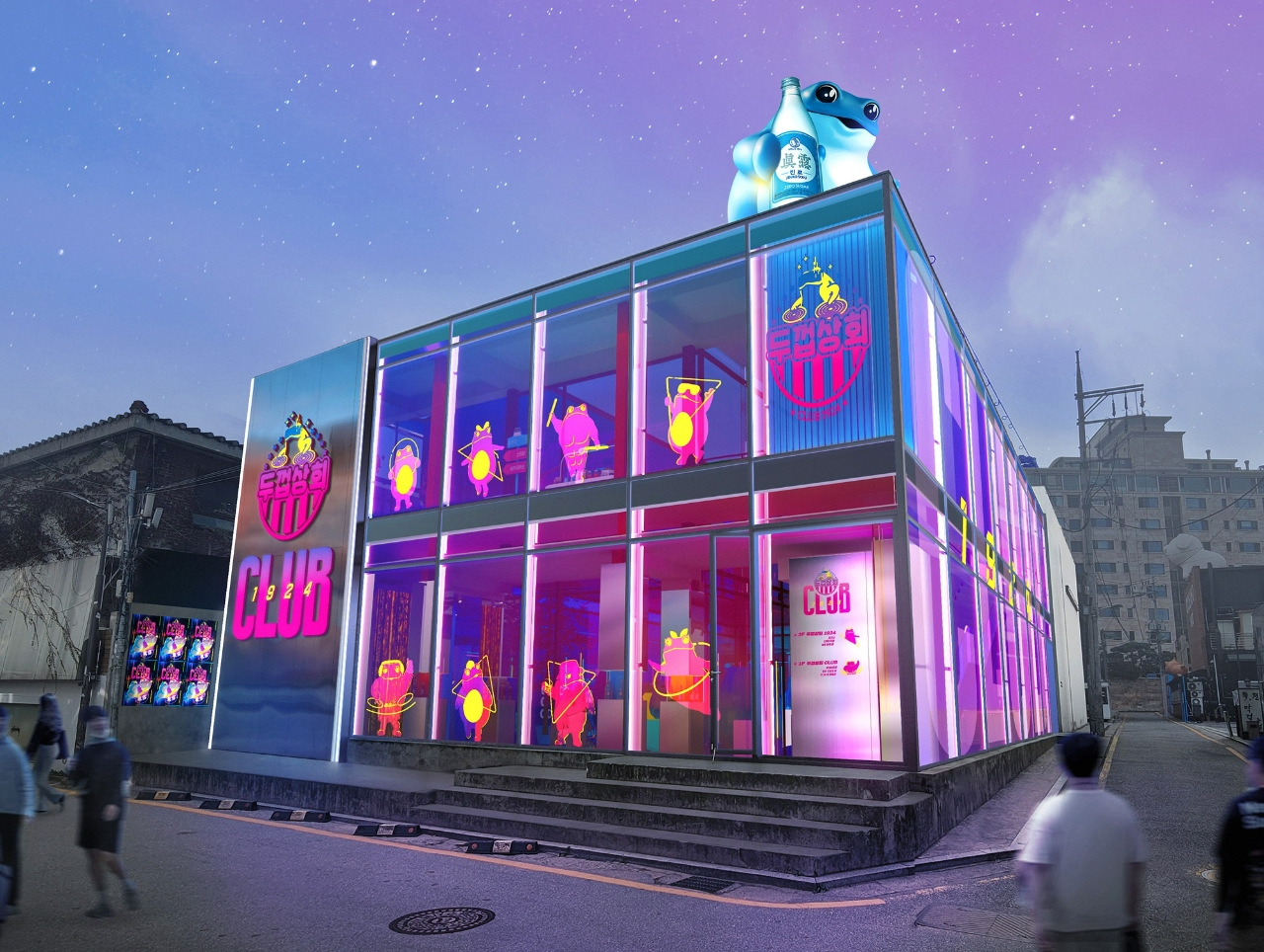 1, 2층 각각 약 330㎡의 탁 트인 공간에서 클럽 분위기를 연출하고 방문객들이 자유롭게 브랜드 체험을 즐길 수 있도록 꾸몄다. 특히, 1층 야외 중정은 자이언트 두꺼비 등 다양한 규모의 두꺼비 조형물을 배치해 이색적인 포토존으로 꾸몄다.