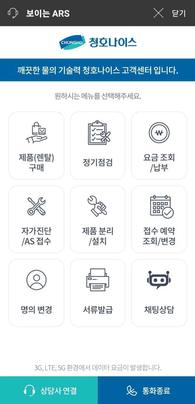 이미지 확대보기26일 청호나이스에 따르면 ‘보이는 ARS 서비스’는 고객이 고객센터에 전화했을 때 ARS 음성안내와 동시에 스마트폰 화면을 보면서 원하는 서비스를 손쉽게 선택할 수 있는 시스템이다.