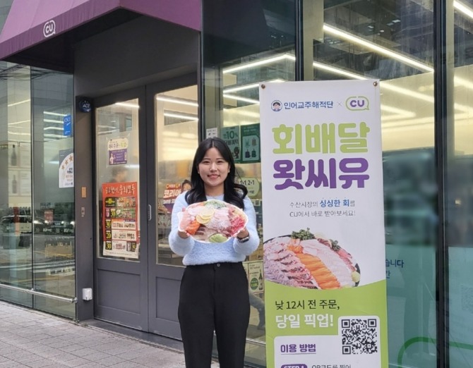 CU가 지난 2022년 수산물 전문 유통 플랫폼인 인어교주해적단과 손잡고 업계 단독으로 선보인 활어회 픽업 서비스는 오전 12시 전에 주문한 노량진, 가락동 수산시장의 회를 당일 오후 8시 이후 집 근처 편의점에서 바로 수령할 수 있는 서비스다.