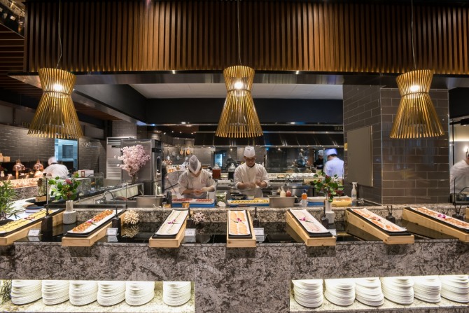 뿐만 아니라 갓잡은 싱싱한 활어회와 최대 24시간 숙성해 만든 초밥 등 고급 해산물, 그릴에 직접 구운 양고기(저녁 한정), 스테이크 등 특별 메뉴도 내세우고 있다. 호텔 출신 셰프들이 머리를 맞대고 연구한 한식 또한 이곳의 자랑이다. 넓은 실내도 분위기를 중시하는 요즘 트렌드에 맞춰 인테리어했다.