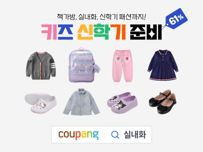 먼저 쿠팡은 오는 25일까지 '키즈 신학기 준비' 할인 행사를 실시한다. 책가방, 실내화, 맨투맨, 후드, 원피스 등 다양한 의류를 최대 61% 할인된 가격에 선보인다. 이번 행사에는 ‘나이키’ ‘휠라키즈’ 등 스포츠 브랜드부터 어린이에게 인기가 높은 ‘산리오’와 ‘포켓몬스터’가 참여한다.