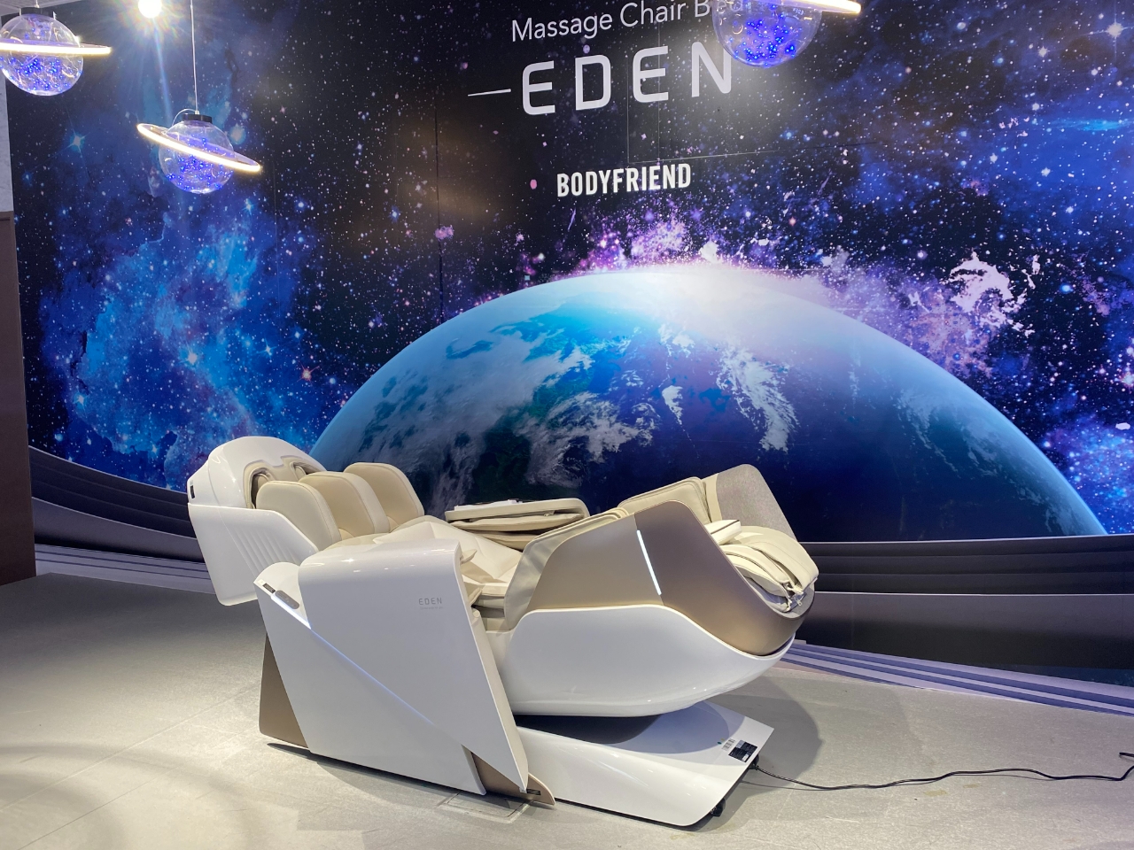 바디프랜드의 하이브리드 마사지체어 '에덴'은 오는 22일 오후 4시 11번가 '모바일 라이브 론칭' 방송을 통해 만나볼 수 있다. 백화점을 포함한 전국 직영 라운지에서 직접 체험도 가능하다.