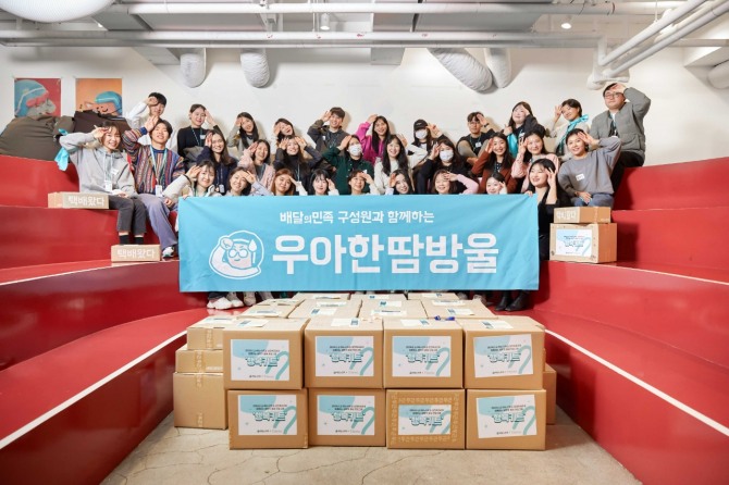 이미지 확대보기5일 배달 앱 배달의민족을 운영하는 우아한형제들에 따르면 지난달 29일 삼전종합사회복지관과 함께 본사가 위치한 송파구의 취약 아동·청소년 60명에게 전달할 ‘행복키트’를 제작했다. 이번 봉사활동에는 사내 구성원으로 이뤄진 ‘우아한땀방울’이 참여했다.
