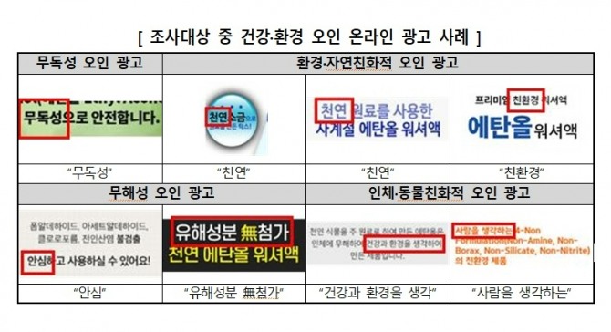 조사대상 50개 중 14개 제품의 포장 또는 온라인 광고에 화학제품안전법에서 금지하고 있는 문구를 사용하고 있었다.